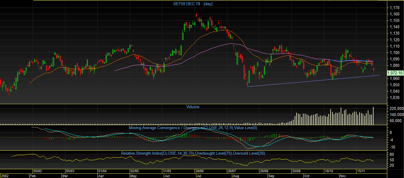 S50Z19 TF60 Min: เมื่อสัปดาห์ที่ผ่านมา ดัชนีได้ร่วงลงมาอย่างรุนแรง ภายหลังไม่สามารถผ่านแนวต้าน 1090 จุด ขึ้นไปได้ อย่างไรก็ตาม