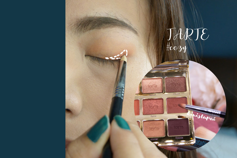 เปลี่ยนแปรงให้เป็นหัวเล็กลง แล้วเลือกสีที่เข้ม ปายเลือกสี Cozy ลงบริเวณหางตา