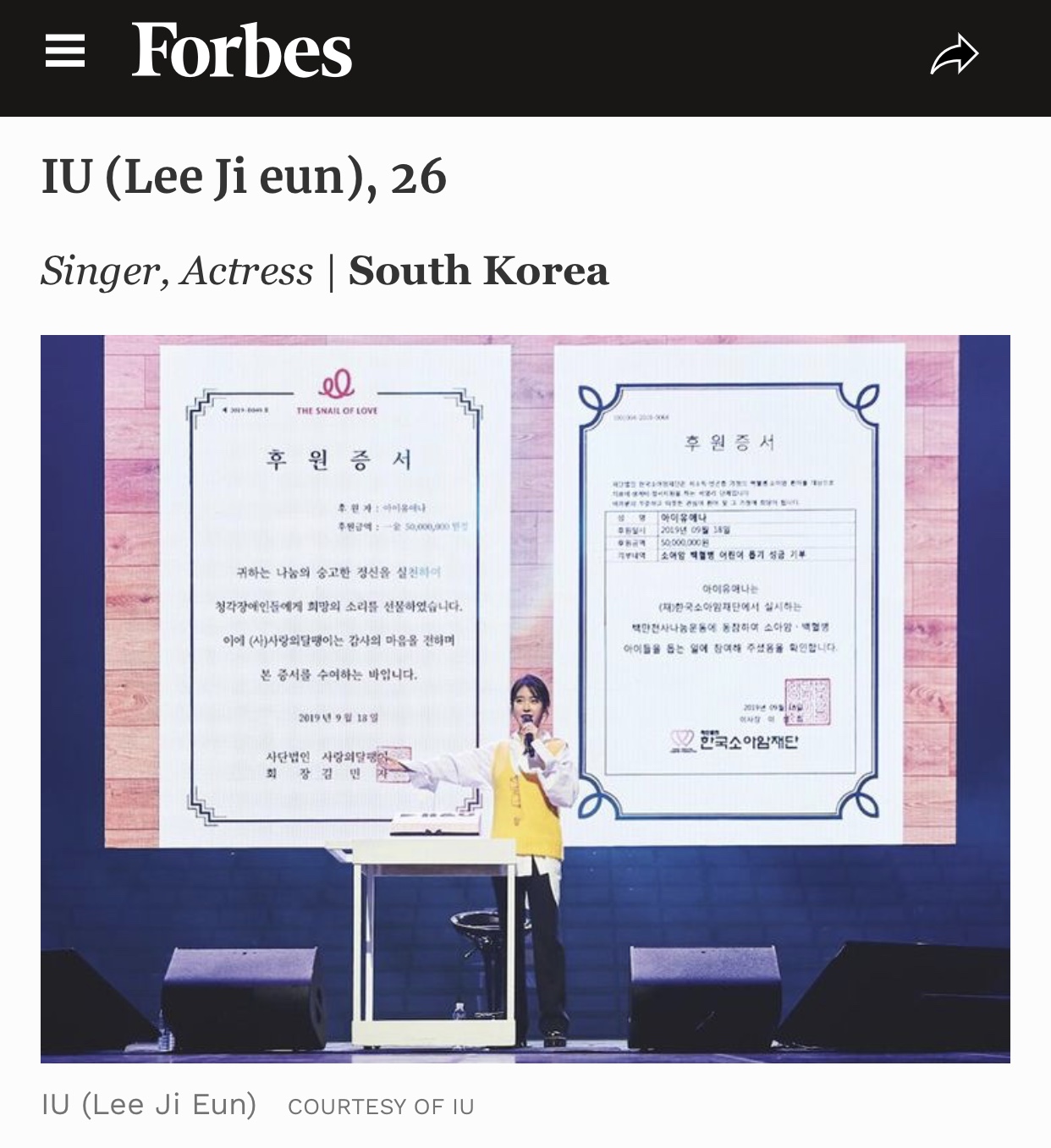 IU is included in Asia’s 2019 Heroes Of Philanthropy !!!