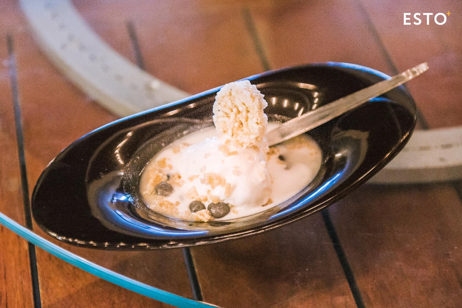 บัวลอยเนื้อแน่นเสิร์ฟพร้อมไอศกรีมกะทิ