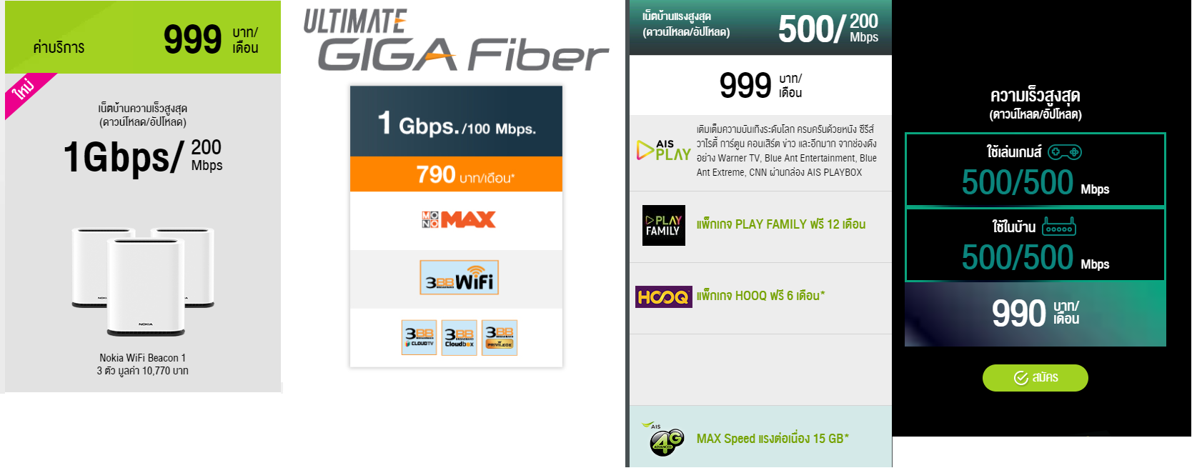 อยากติดเน็ตบ้าน ในโครงการมีคนใช้ทั้ง true ais 3bb อยากทราบว่ามีค่ายไหนราคา 500 ได้เน็ต 1024/100 Mbps แล้วแถมพ่วงซิมเน็ตให้ใช้ฟรีบ้างครับ หรือถ้าเน็ตอย่างเดียว ไม่เกิน 500 บาท
