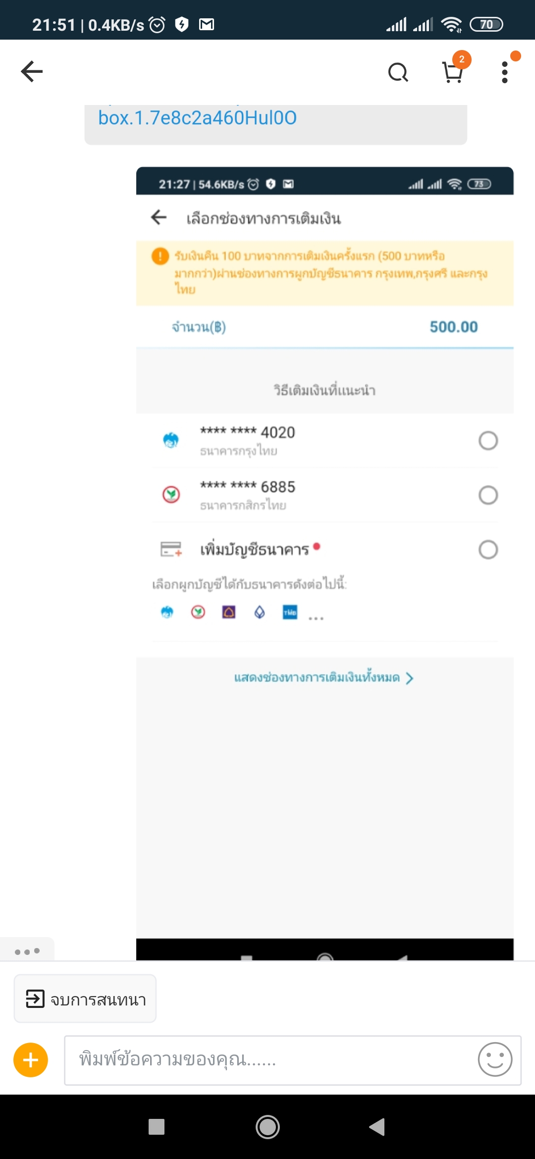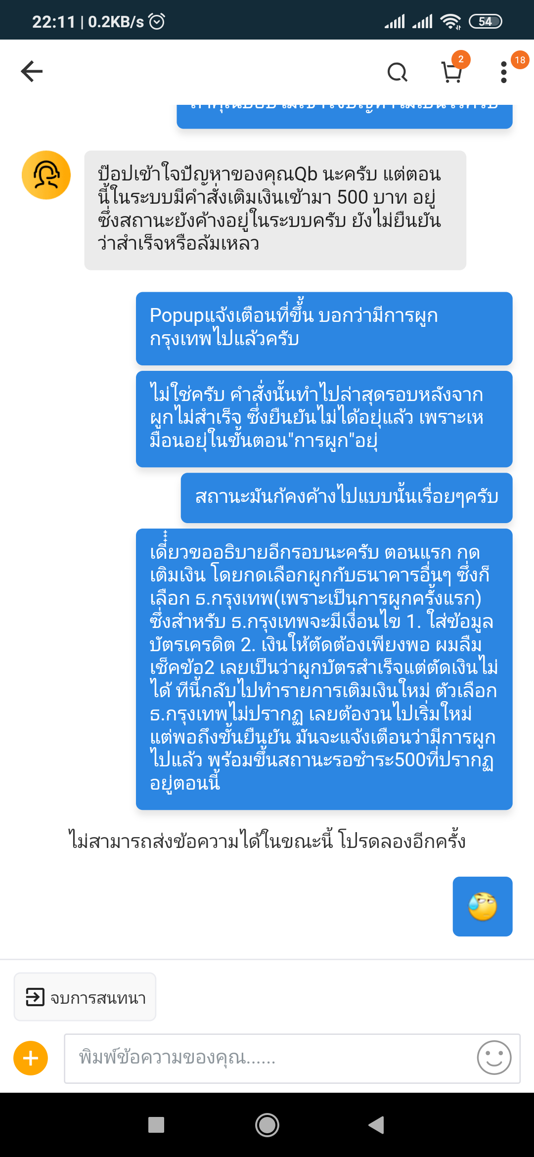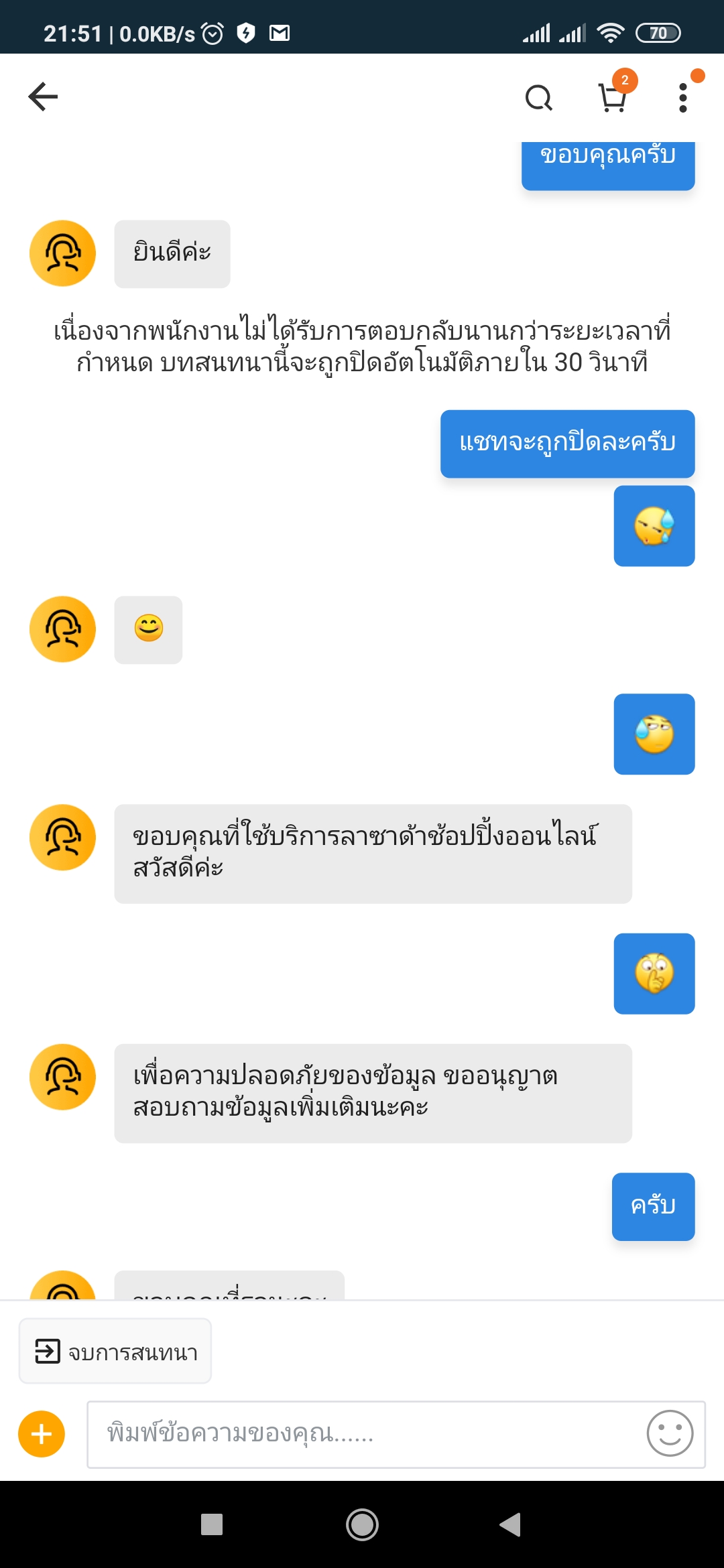 เนื่องจากค่ำแล้ว นอกเวลาทำการจึงติดต่อได้เฉพาะแชทในแอพ