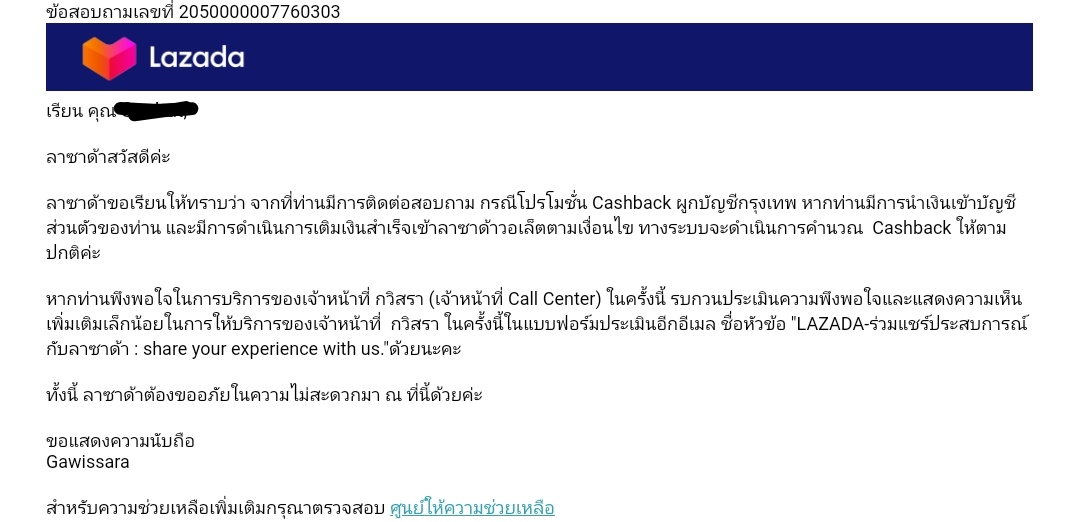 [CR] รีวิว Customer Service ในการแก้ปัญหาจากเจ้าหน้าที่ Lazada ไทย