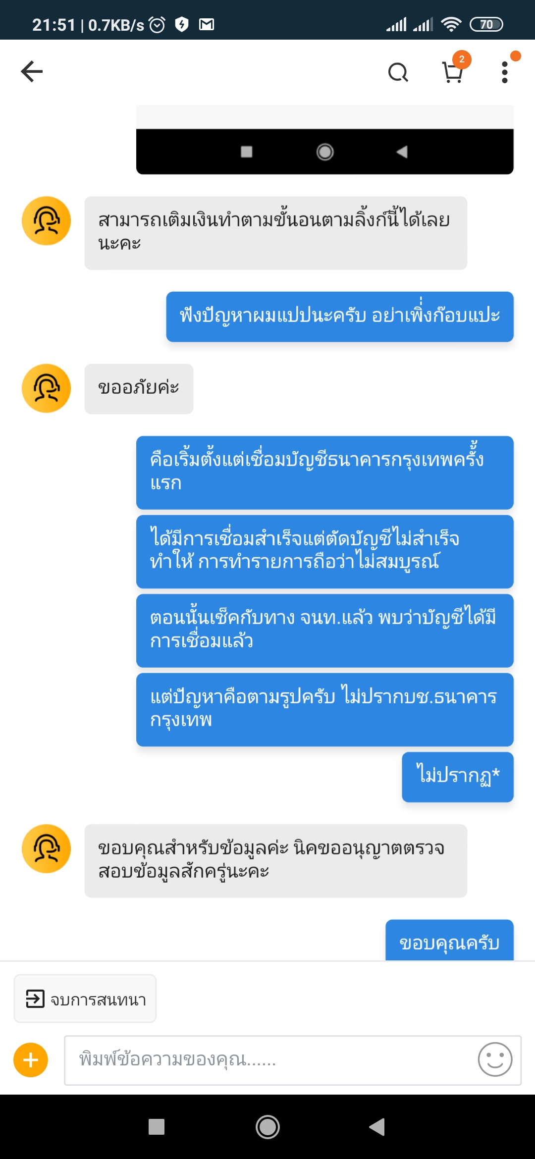 นอกเวลาทำการ ติดต่อแชท ในแอพอีกครั้ง