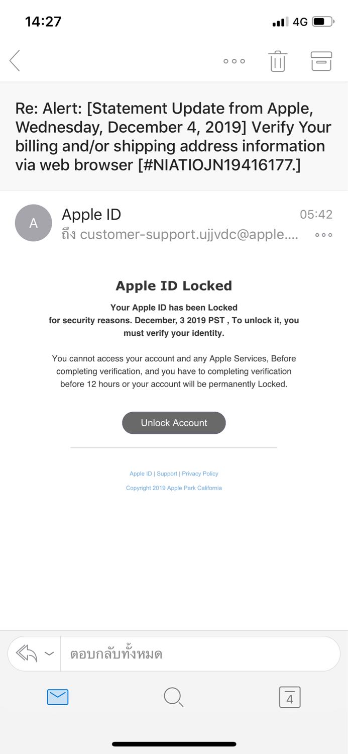 ใครเคยเจอเมล์AppleIDปลอมกับเมล์ธนาคารปลอมบ้างมั้ยคะ