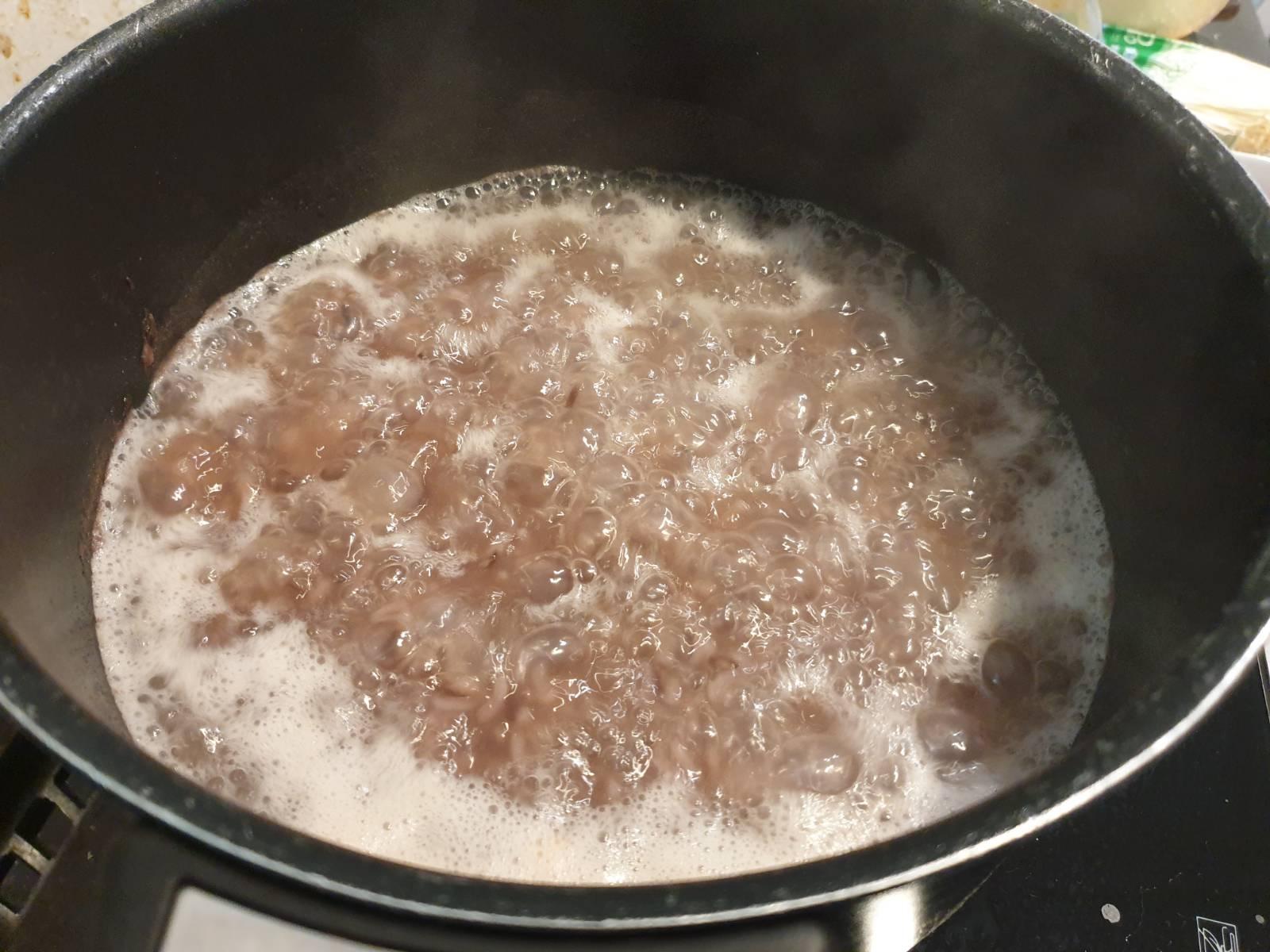 1.วันนี้ใช้ข้าวไรซ์เบอรี่ 1 ถ้วยตวง ใส่น้ำเยอะๆ ต้มไปเลยค่ะ จนกว่าเม็ดข้าวจะบาน