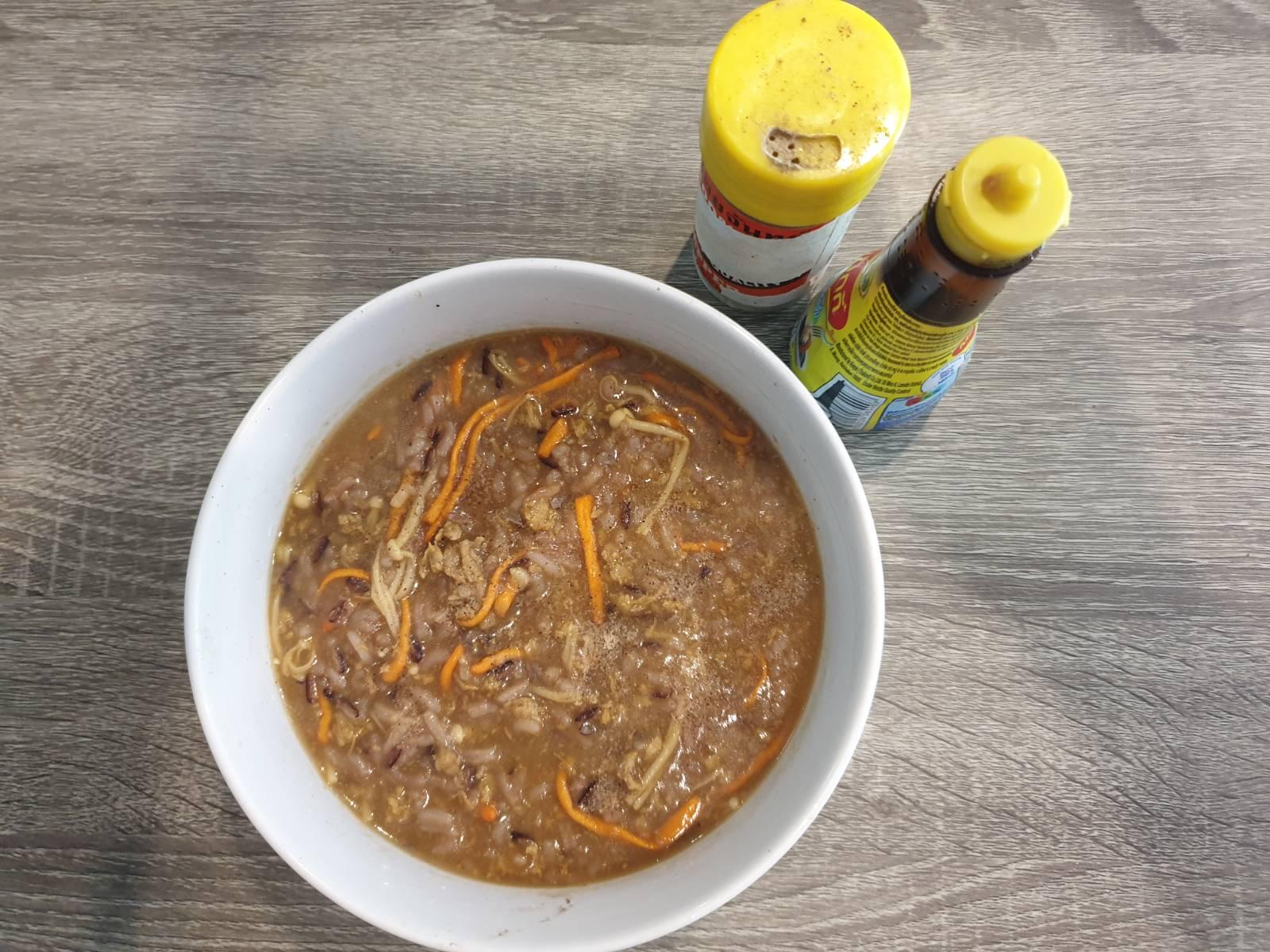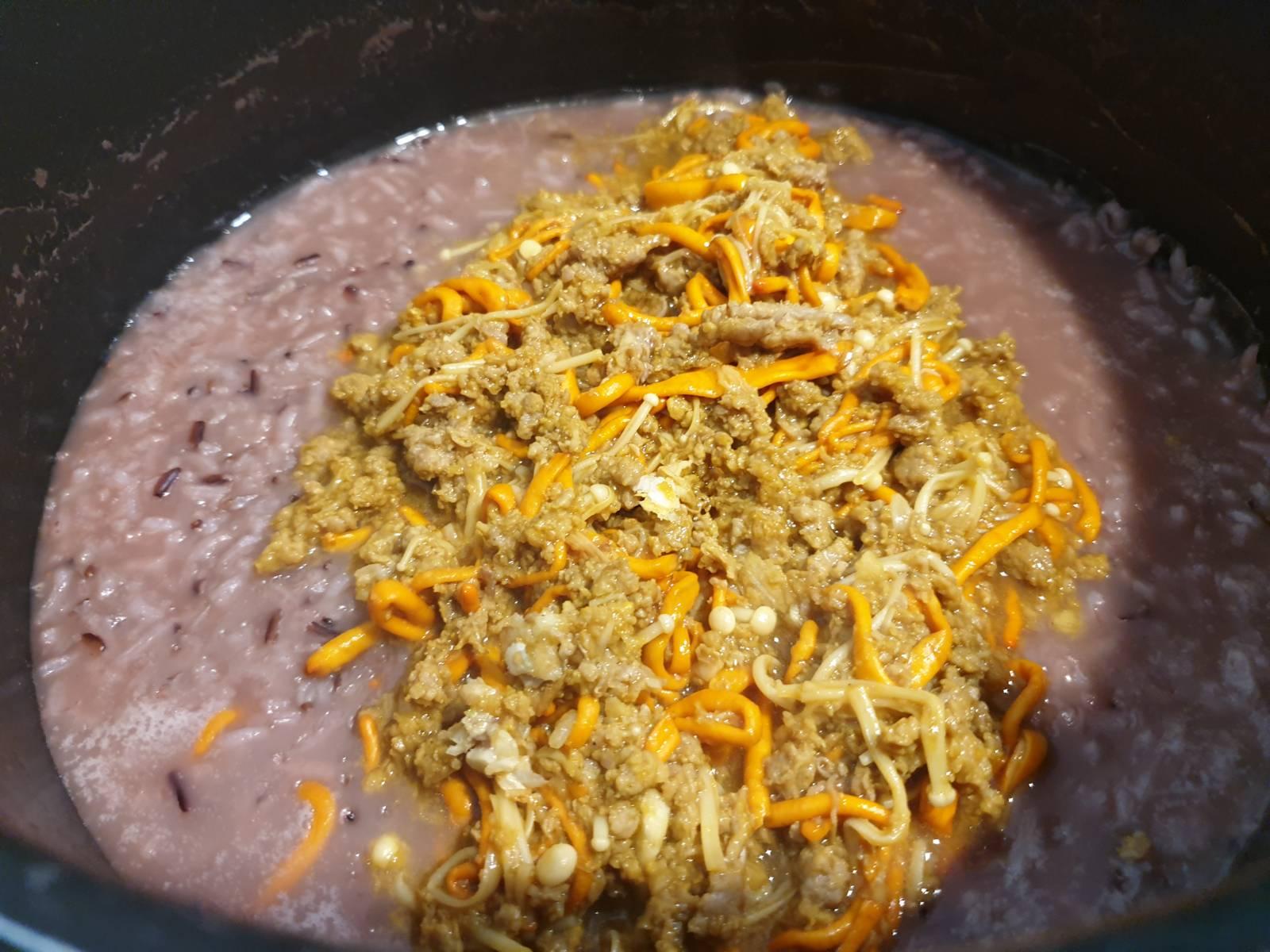 4.จะได้ข้าวต้มเนื้อสับเห็ดถั่งเช่าสีทองทรงเครื่องแล้วค่ะ^^ อร่อยโล่งคอ สำหรับเมนูคนเปื่อย รักษาสุขภาพด้วยจร้า