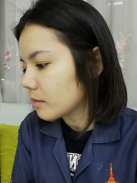 พอถึงวันที่ต้องมาทำจริงๆ เราก็แอบตื่นเต้นนิดๆนะ เพราะมันทำฟรีไง เราก็แบบ...หมอจะทำให้เราออกมาเป็นยังไงนะ แล้วถ้าเรามีคางหน้าเราจะเป็นแบบไหน.. หมอจะใจดีกับเราเหมือนตอนที่เราเสียตังทำจมูกมั้ยนะ แต่สุดท้ายเราก็เข้าไปห้องผ่าตัดค่ะ หมอพูดคุยกับเราเป็นปกติเลย ก่อนทำหมอก็บอกว่า ถึงเราจะเป็นเคสทำฟรีแต่หมอก็ตั้งใจออกแบบซิลิโคนให้เหมาะกับหน้าของเรามากที่สุด ได้ยินแบบนี้เรานี่แทบจะร้องไห้เลยค่ะ มันดีใจอ่ะ แบบ...เห้ย เค้าใส่ใจเรานะ ถึงแม้เราจะเป็นเคสทำฟรีอ่ะ แต่ก็ยังไม่ทันได้ร้องไห้ยาสลบก็ออกฤทธิ์ไปก่อน
