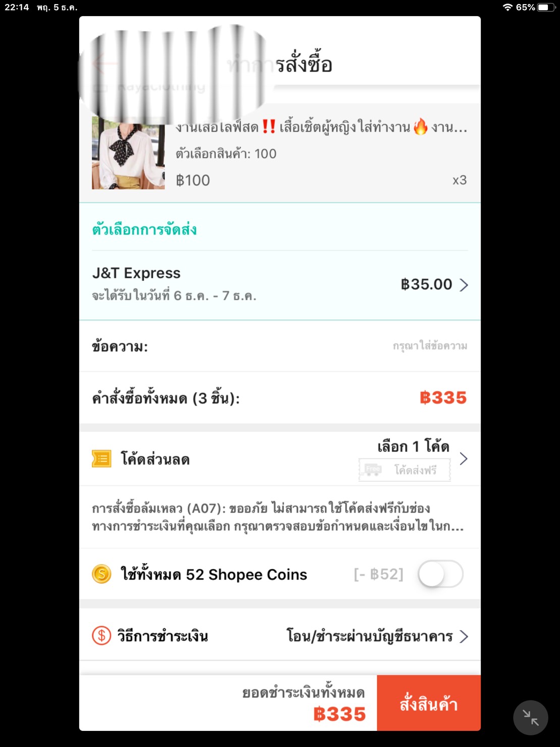 การชำระเงินใน Shopee