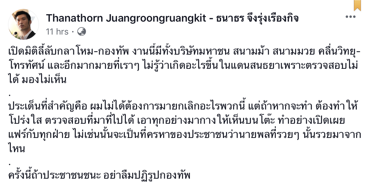 อยากให้ ธนาธร ฟ้องศาล แบบศรีสุวรรณ ในเรื่องต่างๆ ที่ทุจริต