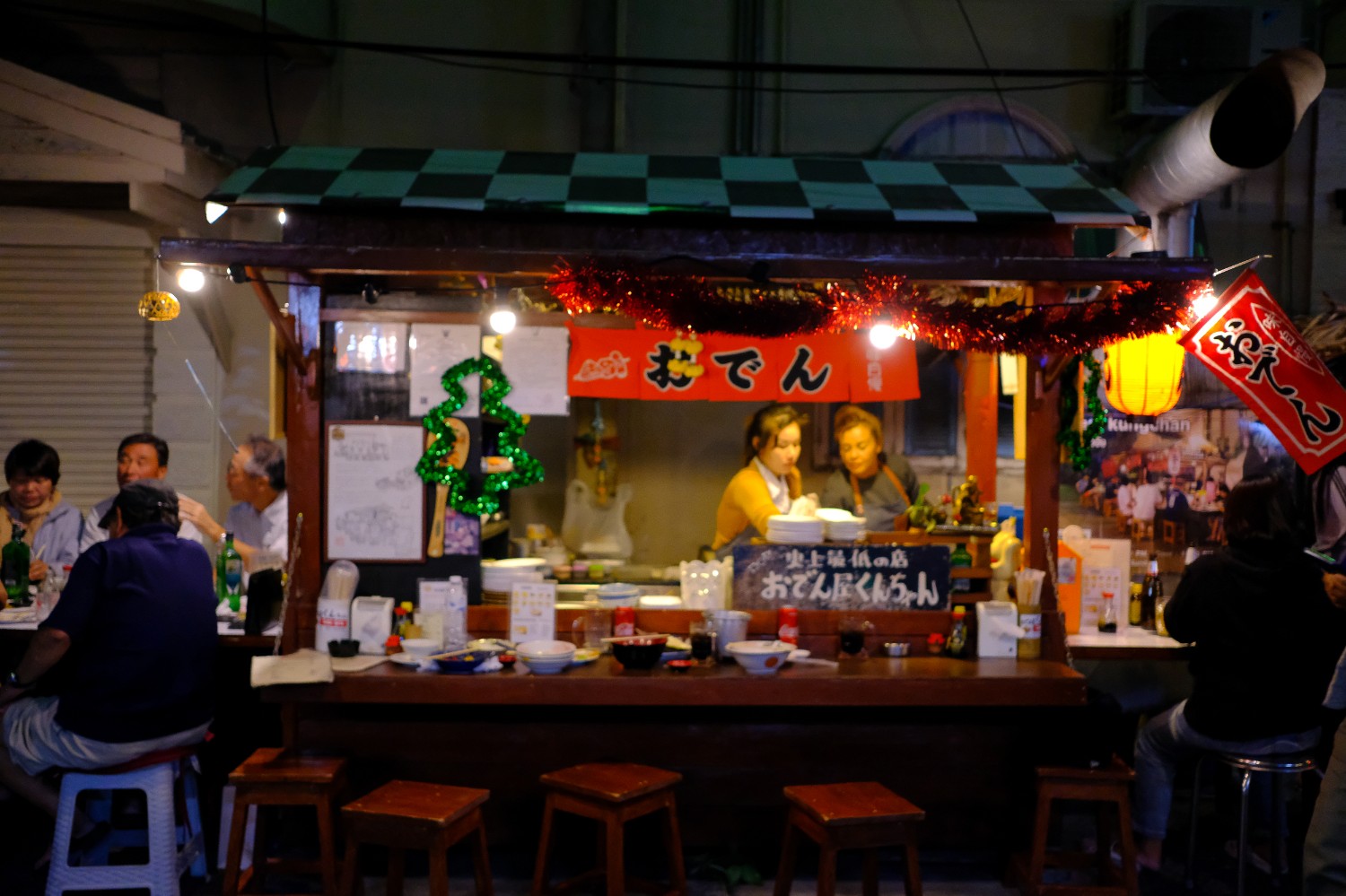 ร้านนี้ผมเองก็เพิ่งมาเป็นครั้งแรกเช่นกัน แต่ผ่านมาเห็นอยู่บ่อยๆ ที่ร้านจะมีพวกโอเด้ง ของทอด ข้าวแกงกะหรี่ (น่าจะมีเฉพาะวันศุกร์) ราเมง อุด้ง ก็มี เมนูมีไม่ได้เยอะมาก พวกซูชิ ปลาดิบไม่มีนะครับ ร้านนี้ออกจะเป็นประมาณร้านนั่งสังสรรค์มากกว่า คนญี่ปุ่นเยอะทีเดียวร้านนี้
