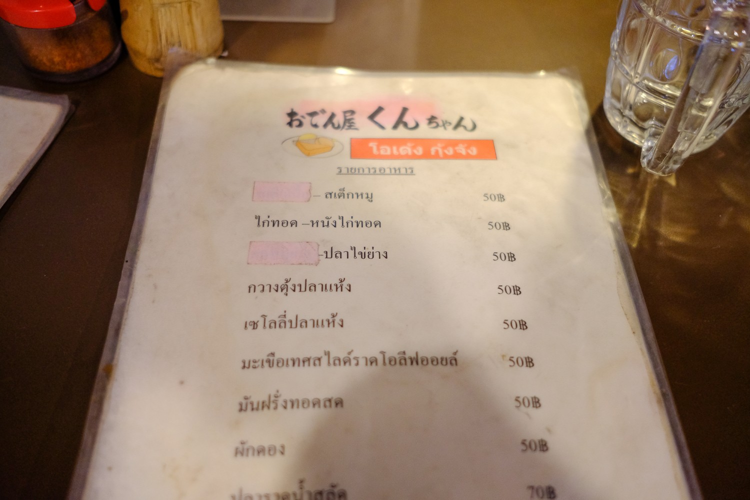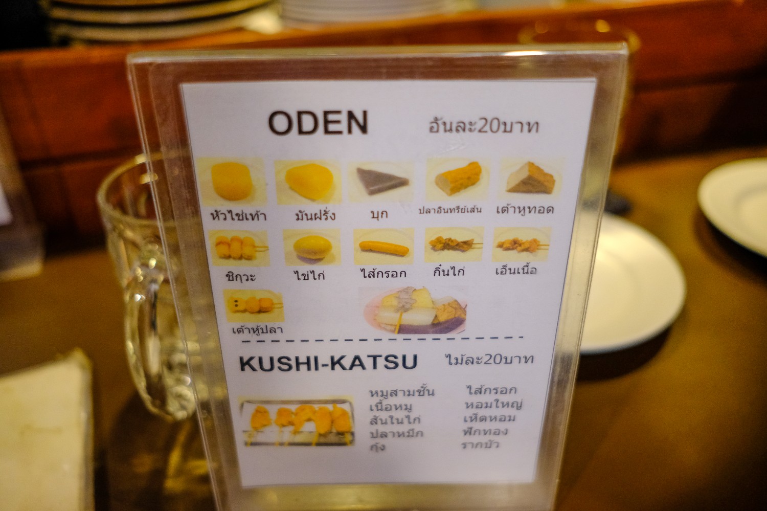 วันนี้นั่งตรงด้านหน้าพอดี ลองดูเมนู จะมีไม่เยอะมาก แต่พวกโอเด้ง ของทอดก็มีหลายแบบอยู่