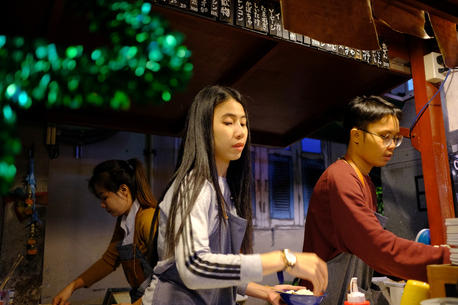 เจ้าของเป็นคนญีปุ่น เห็นเดินไปเดินมาคุยกับแขกอยู่ ส่วนที่อยู่ตักอาหารน่าจะเป็นภรรยากับลูกๆ