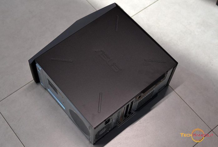 ในด้านการออกแบบนั้นอาจจะมุมมองของแต่ละคนไม่เหมือนกันครับแต่สำหรับตัวผมเองมองว่ามันดูดีสวยแบบเรียบๆแต่ก็เด่นด้วยไฟ RGB ข้างหน้าแบบไล่สีสวยงามเนียนตาแน่นอนว่าถ้าประกอบเองเคสที่ได้อาจจะไม่ได้สวยหรืออาจจะมีหลากหลายแบบให้เลือกมากกว่าก็แล้วแต่ชอบครับ แต่ถ้ามองในคอมสำเร็จตัวนี้ถือว่าสวยอันดับต้นๆเลยคือมันดูดี หรูเรียบ แต่ก็แฝงไปด้วยไฟและความคมตามแบบ ROG ตัวเคสนั้นขนาดเล็กๆไม่ใหญ่ไม่หนักมากครับวัสดุเป็นพลาสติกในด้านหน้าและเป็นวัสดุในรอบๆเครื่องเป็นเหล็ก แต่น่าเสียดายในไทยไม่มีฝาข้างกระจกมาเป็นตัวเลือกครับ และ มีการเจาะรูระบายความร้อนไว้ด้วยในด้านข้าง และในส่วนด้านบนนั้นก็มีช่อง USB มาให้ด้วยเช่นกันครับ