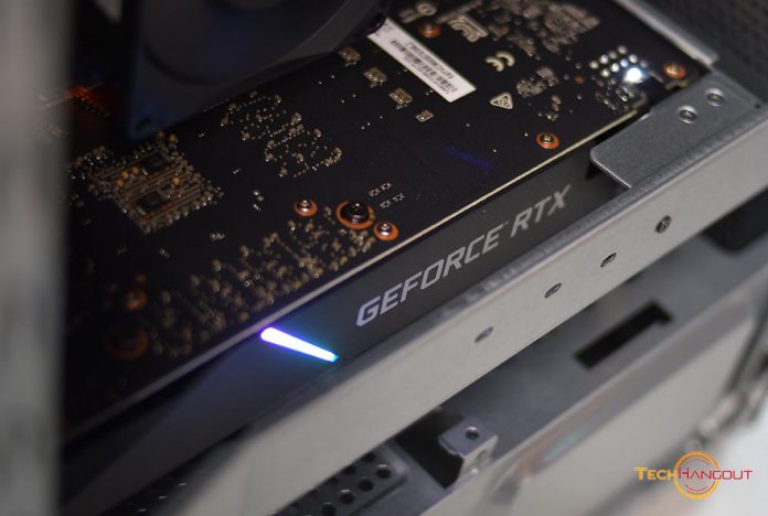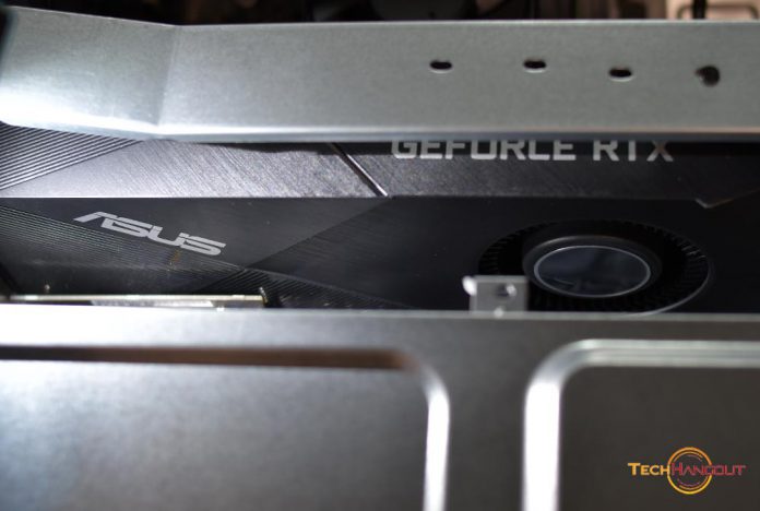 มาส่องตัวการ์ดจอแบบชัดๆเห้ยมันสวยอยู่นะ และที่ดูนั้นน่าจะเป็นตัว ASUS GeForce RTX™ 2060 6G Turbo Edition GDDR6 ครับมาพร้อมพัดลมเดียว และ ไฟขอบๆแบบปรับสีไมไ่ด้ แต่ไล่สี ม่วงฟ้าสวยๆสว่างมากครับแต่มองตรงๆมันจะโดนคานยึดการ์ดจอบังไปเต็มๆเลยหมดกันเลยความสวยงาม แต่เพื่อความแข็งแรงก็ยอมกันไปละกัน