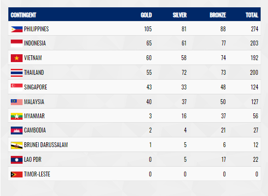ซีเกมส์ 2023 ที่พึ่งจบไปไม่นานนี้ ที่จัดขึ้นประเทศกัมพูชา แชมป์ซีเกมส์คือ เวียดนามได้ 136 เหรียญทอง 105 เหรียญเงิน 118 เหรียญทองแดง ไทยเป็นอันดับ2