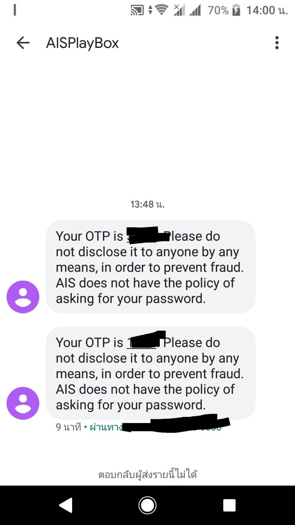 มีsms แจ้งotp ครับ ผมงงว่ามาได้อย่างไร มีคนจะเข้าแอพ my ais แทนผมหรือครับ
