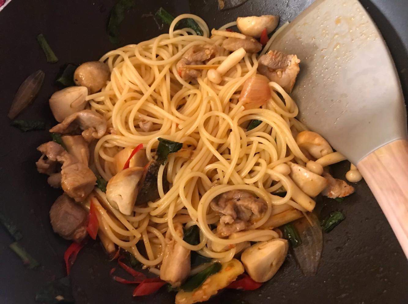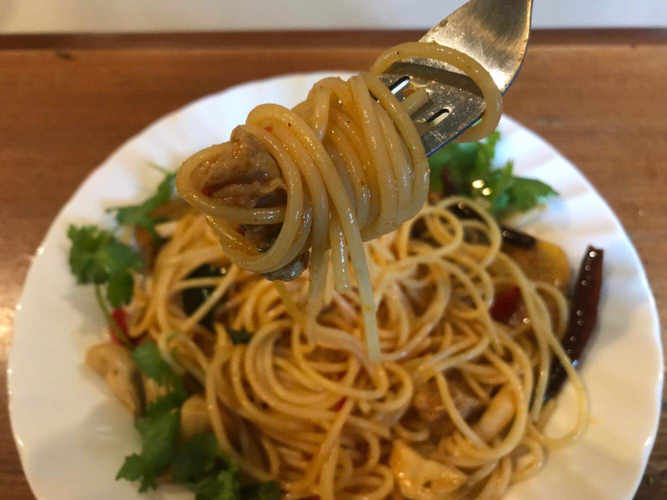 ลองทำสปาเก็ตตี้ละกัน… แน่นอนว่าต้องใส่สมุนไพรเยอะหน่อยเพื่อดับกลิ่น เลยออกมาเป็นเมนูนี้ค่ะ “สปาเก็ตตี้ต้มยำหมูป่า” ไปดูกันเลย!!