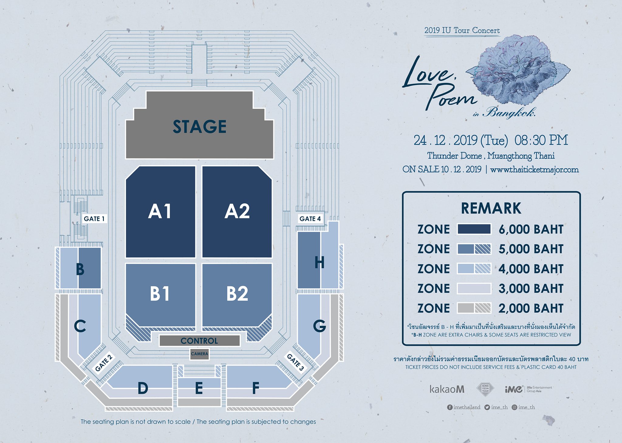 *ทั้งนี้ที่นั่งโซนอัฒจรรย์ B-H ที่เพิ่มมาเป็นที่นั่งเสริม และบางที่นั่งมองเห็นได้จำกัด