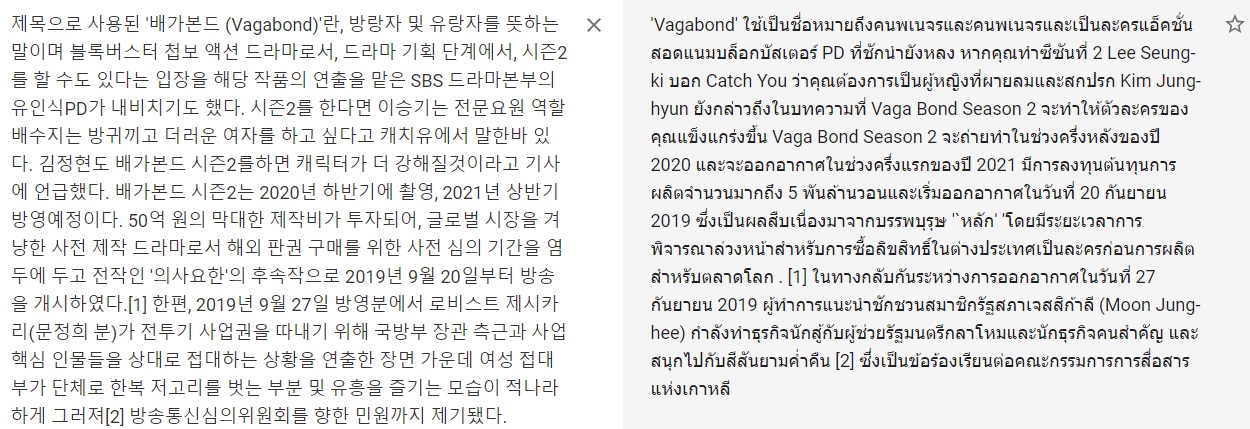 ผมอ่านภาษาเกาหลีไม่ออกนะครับ แต่ลองจับใส่ Google Translate มีประโยคที่บอกว่า "VagaBond Season 2 จะถ่ายทำในช่วงครึ่งหลังของปี 2020 และจะออกอากาศในช่วงครึ่งแรกของปี 2021" ถ้าจริงก็รอกันไปอีกปีกว่าๆ ถือว่าไม่นานจนเกินไปนะเนี่ย หรือใครพออ่านเกาหลีได้ ช่วยแกะความให้หน่อยนะครับ ไม่มั่นใจแปลอากู๋เท่าไหร่