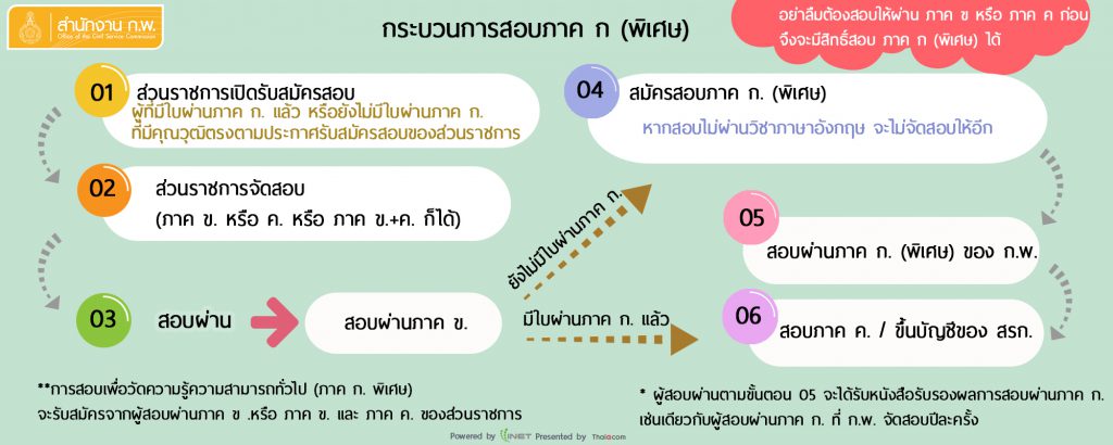 *ผู้สอบผ่านตามขั้นตอที่ 5 จะได้รับหนังสือรับรองผลการสอบการผ่านภาค ก. เช่นเดียวกับผู้สอบผ่าน ภาค ก. ที่ กพ. ที่จัดสอบปีละครั้ง