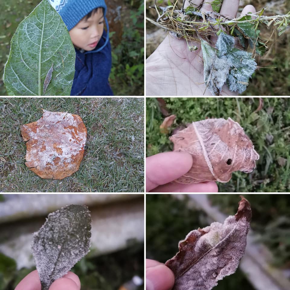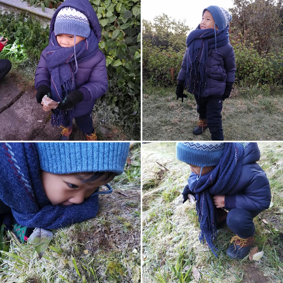 -ลูกตื่นเต้นมากที่เห็นใบไม้มีเกร็ดนำ้แข็งติด (จริงๆลูกก็เคยเห็นหิมะที่ญี่ปุ่นแล้วนะ)แต่เกร็ดนำ้แข็งก็ยังเป็นสิ่งที่ตื่นเต้นของเด็กๆอยู่ดี