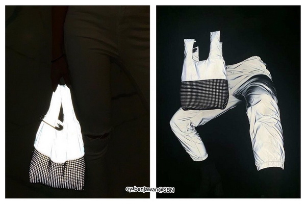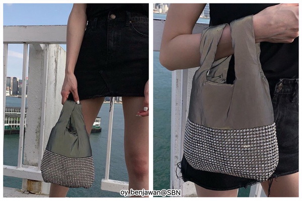 กระเป๋าเรืองแสงตกแต่งด้วยคริสตัลใช้ได้สองด้านน่ารักมากๆค่ะ
