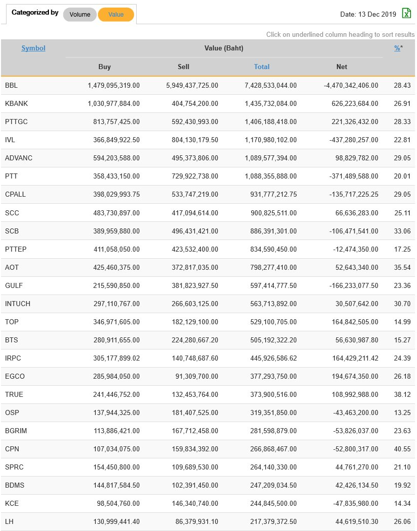 นักลงทุนต่างชาติ NVDR ซื้อ-ขาย มูลค่าสูงสุด 25 อันดับ 13/12/62