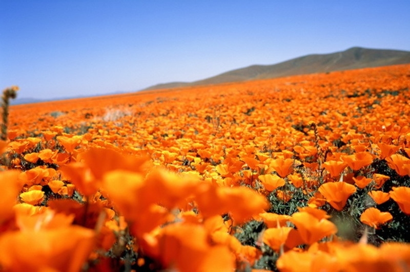 ดอกป๊อปปี้ทะเลทรายนี้ ถือเป็นดอกไม้ประจำรัฐของแคลิฟอร์เนีย เป็นนักอยู่รอดในธรรมชาติตัวจริง มักจะขึ้นตามพื้นที่แห้งแล้ง หรือที่มีฝนตกปริมาณน้อย มันจะออกดอกอย่างเร็วเพื่อกระจายเมล็ดออกไปให้มากที่สุด เมล็ดของมันถูกเก็บเอาไว้อย่างปลอดภัย จนกว่าถึงช่วงเวลาที่ฝนตก ซึ่งอาจไม่มานานหลายปี เมื่อใดก็ตามที่ฝนตกลงมา ดอกป๊อปปี้จะกระพานสะพรั่งไปทั่วหุบเขาและเนินหิน เต็มไปด้วยสีส้ม และสีเหลืองอันเป็นสีสันที่โดดเด่นประจำตัวของพวกมัน