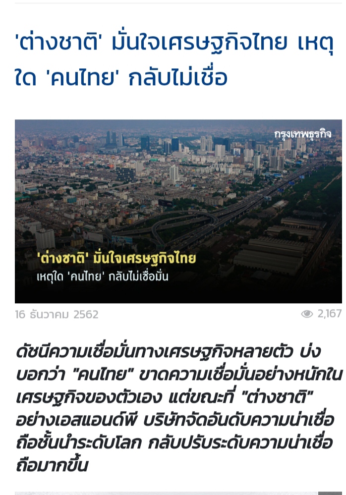 ต่างชาติเชื่อมั่นเศรษฐกิจไทย เหตุใดคนไทยถึงไม่เชื่อ