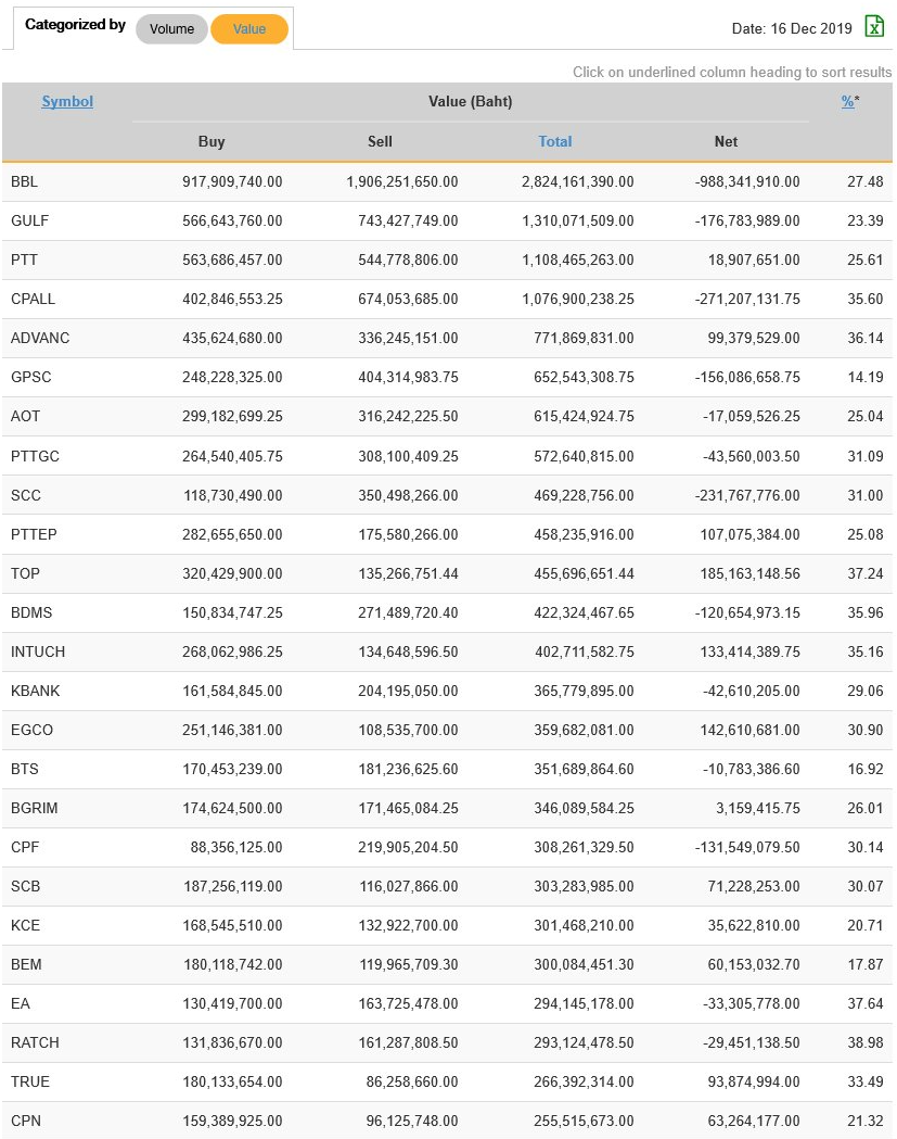 นักลงทุนต่างชาติ NVDR ซื้อ-ขาย มูลค่าสูงสุด 25 อันดับ 13/12/62