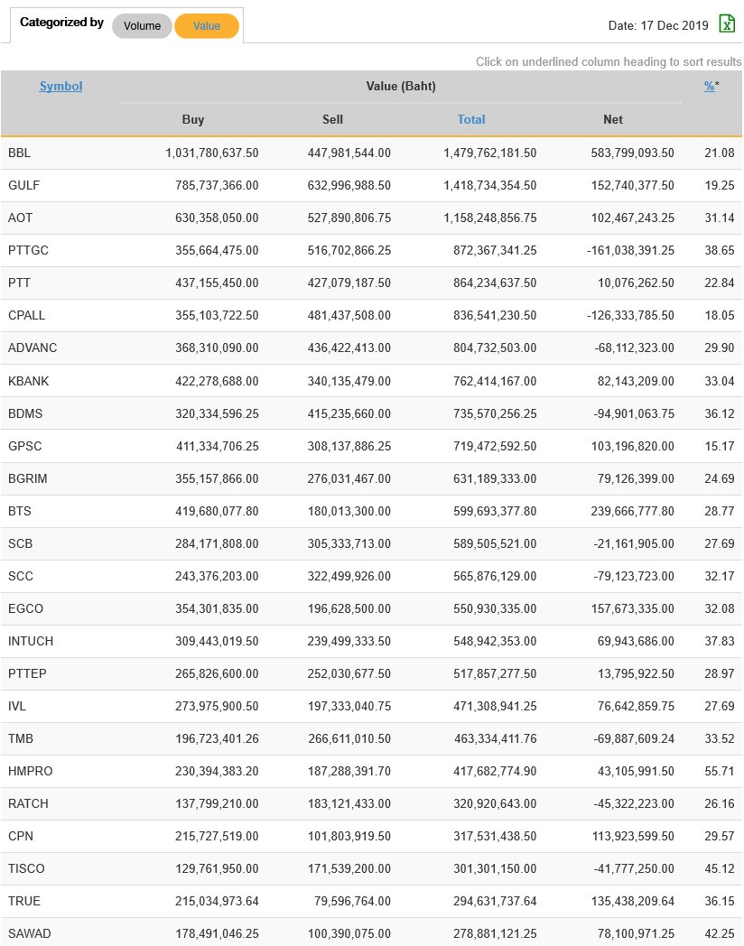 นักลงทุนต่างชาติ NVDR ซื้อ-ขาย มูลค่าสูงสุด 25 อันดับ 17/12/62