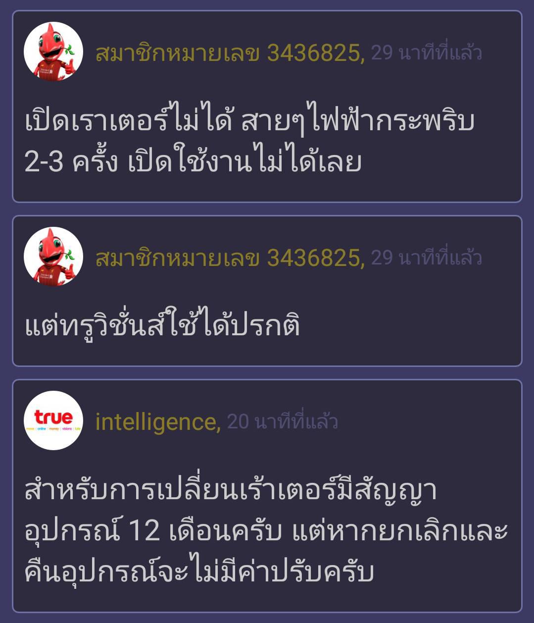 เมื่อช่วงสายๆ ไฟฟ้ากระพริบ ดับไปพักนึงเปิด router อีกไม่ได้เลย (เป็น router humax รุ่นโบราณ docsic) ไม่เปลี่ยน FTTH ให้ ยังจะมาจับผูกสัญญาอีก 12 เดือน เกินไปหรือเปล่า ใช้มาจะ 8 ปีแล้วไร้การพัฒนาแล้วยังจะมาจับผูกสัญญากับการเปลี่ยน router อีก แทนที่คิดจะผูกใจลูกค้าด้วยการดูแลที่ดี จ้องแต่จะผูกสัญญา งานนี้ก็ต้องยกเลิกบริการกันแล้ว ว่าจะเก็บไว้ดูบอลสักหน่อย