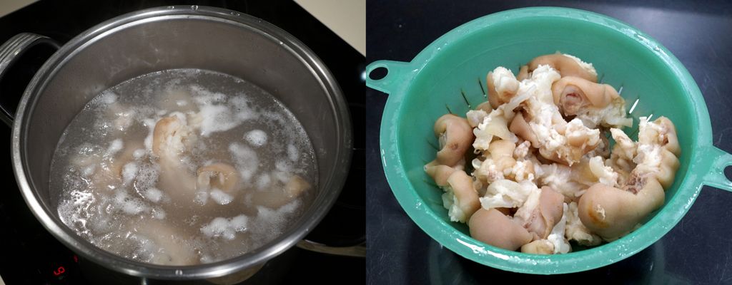นำมาต้มในน้ำเดือดประมาณ 5 นาที เพื่อล้างกลิ่นออก ล้างทำความสะอาดอีกครั้ง
