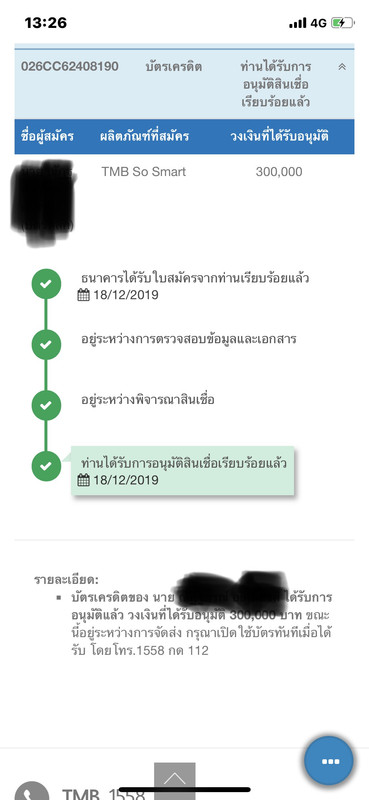 สมัครบัตรเครดิต tmb ผ่าน app tmb touch ระบบขึ้นว่าอนุมัตพร้อมทั้งบอกวงเงิน แต่โทรถาม call center บอกว่าอยุ่ระหว่างดำเนิน