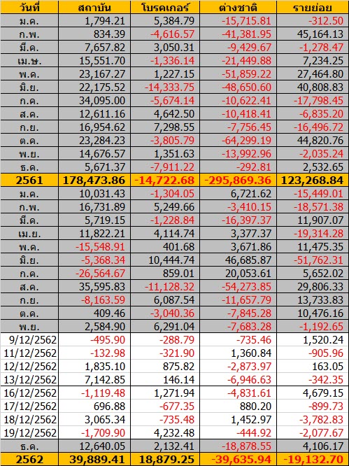 Sinthorn Summary 19/12/2562 : ต่างชาติขายสุทธิ -444.92 ลบ.