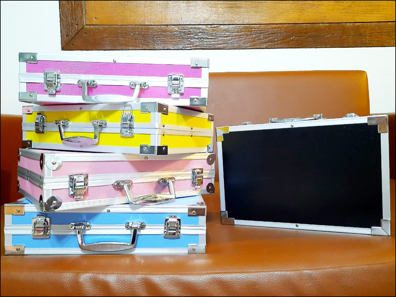 ✅ กล่องอลูมิเนียมสีฟ้า/ชมพูเข้ม/ชมพูอ่อน/ดำ เด็กๆได้ไปต้องกรี๊ดแน่นอน มีที่ล็อค มีหูหิ้ว ทนทานไม่แตกง่าย มี 2 ชั้น สวยงาม
