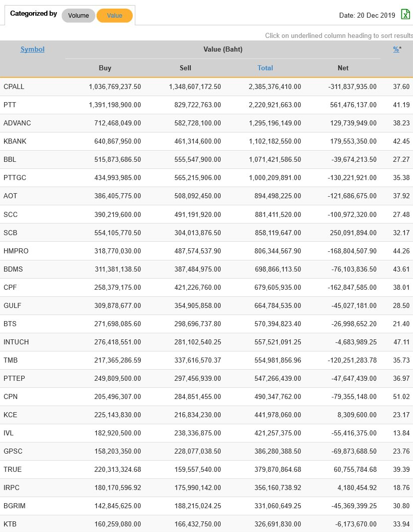 นักลงทุนต่างชาติ NVDR ซื้อ-ขาย มูลค่าสูงสุด 25 อันดับ 19/12/62