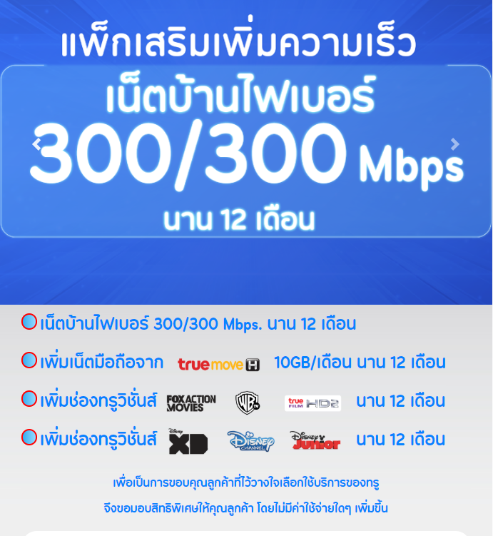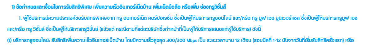 ซึ่งผมไม่ต้องการจะติดสัญญาใดๆกับทางทรูอีกเพราะข้อกำหนดเงื่อนไขในการปรับความเร็ว 300/300 Mbps ในข้อ