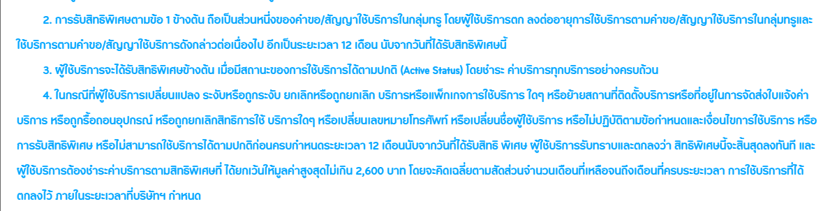 1.1.1.        การรับสิทธิพิเศษตามข้อ 1 ข้างต้น ถือเป็นส่วนหนึ่งของคำขอ/สัญญาใช้บริการในกลุ่มทรู โดยผู้ใช้บริการตกลงต่ออายุการใช้บริการตามคำขอ/สัญญาใช้บริการในกลุ่มทรูและใช้บริการตามคำขอ/สัญญาใช้บริการดังกล่าวต่อเนื่องไป อีกเป็นระยะเวลา 12 เดือน นับจากวันที่ได้รับสิทธิพิเศษนี้