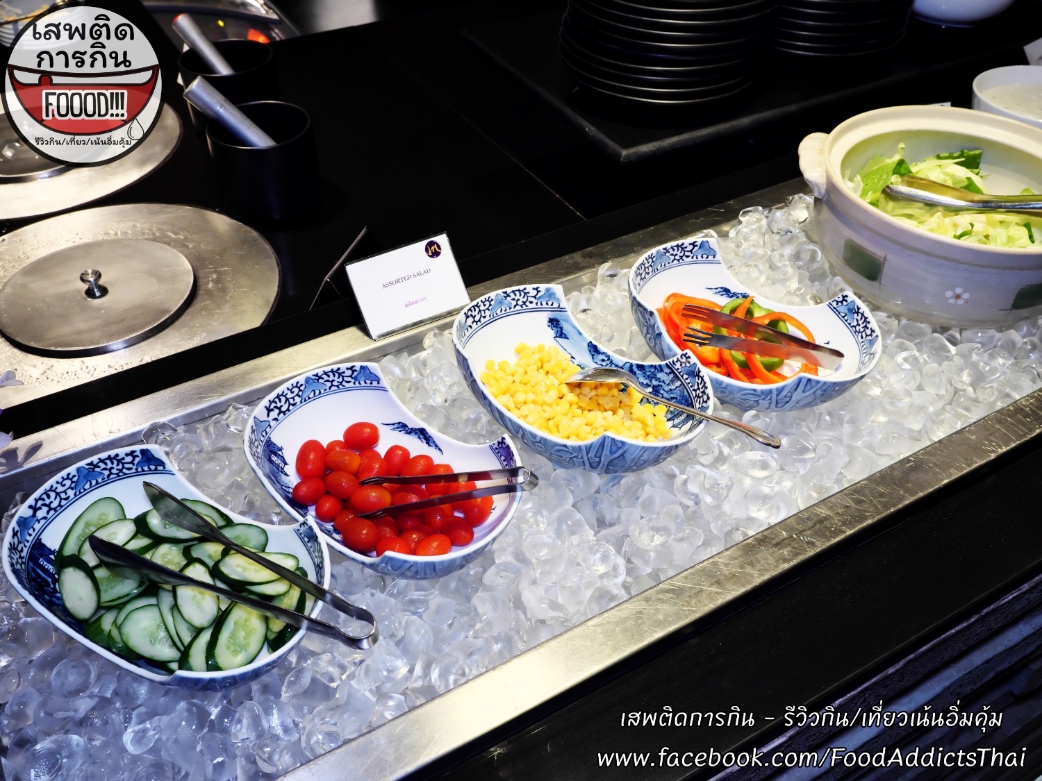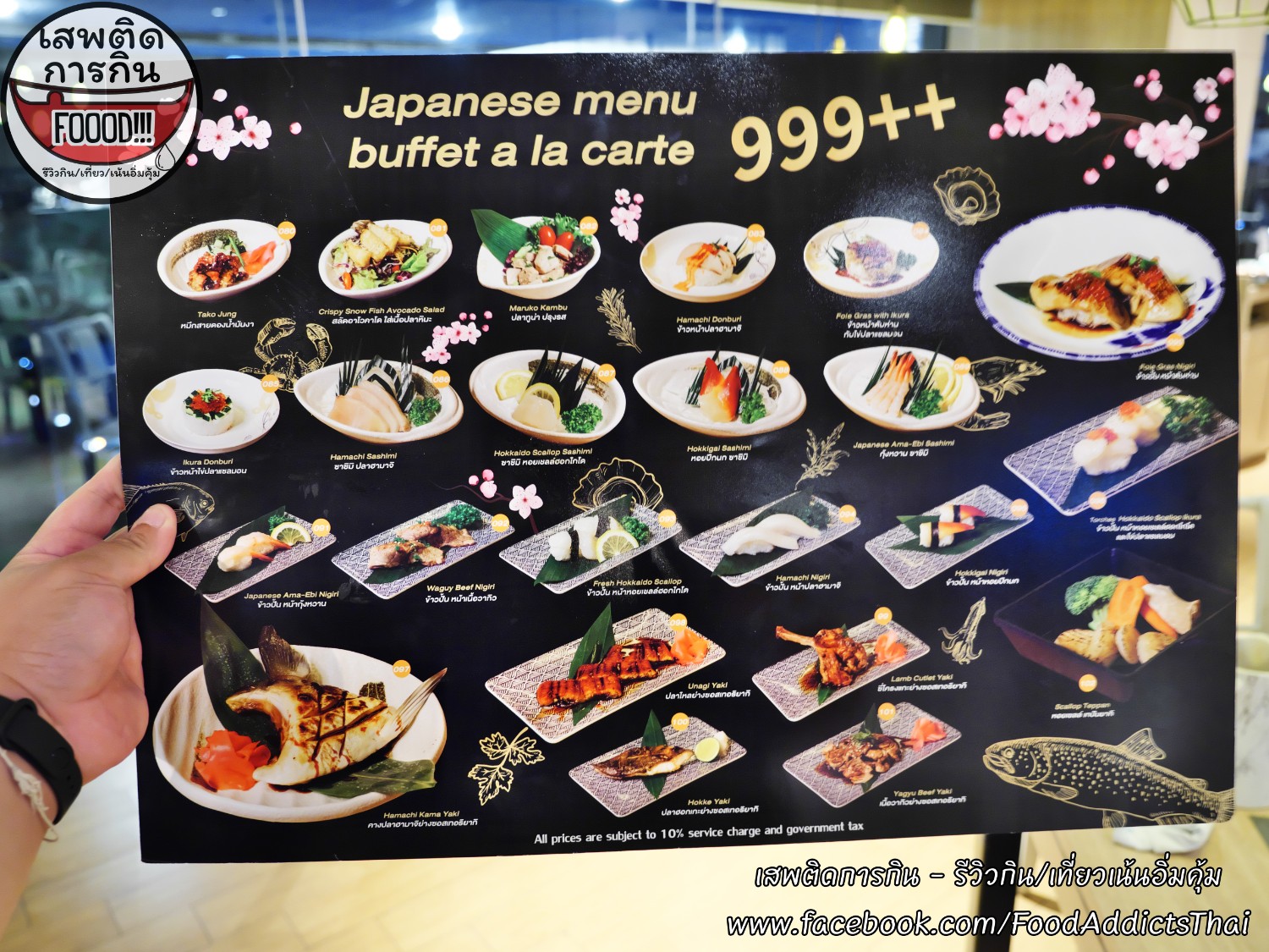 ราคาอย่างที่บอกไปแล้วเบื้องต้น ส่วนวัตถุดิบที่ดีนั้นก็ขยับขึ้นไปตามราคาที่สั่งหากอยากทานแค่ซูชิ/ซาชิมิปลาแซลมอนแบบพื้นฐาน และอาหารญี่ปุ่นรวมกว่า 40 เมนูก็สั่งแค่ราคา 599++ แต่ถ้าอยากทานซูชิหน้าไข่แซลมอน/ซูชิหน้าปลาไหลย่างญี่ปุ่น/ปลามากุโร่/ปลาไหลทะเลย่าง/หอยนางรมญี่ปุ่นและเมนูอื่นเพิ่มอีก 35 เมนูก็ขยับขึ้นไปทานราคา 799++ แต่หากอยากจัดเต็มได้ทานวัตถุดิบระดับพรีเมี่ยมทั้งฟัวกรา/กุ้งหวาน/เอนกาวะ และเมนูต่างๆเพิ่มอีกกว่า 20 เมนู ก็ขยับไป 999++ เท่ากับว่าถ้าเราสั่งราคาสูงสุดจะได้ทานรวมกันเกือบ 100 เมนู ที่สำคัญไม่ต้องเดินไปตักให้เมี่อยเท้า เพราะพนักงานจะนำมาเสิร์ฟให้ที่โต๊ะเกือบทั้งหมดเลยครับ มีเพียงไม่กี่อย่างที่ต้องเดินไปตักเอง แต่ว่าที่ไลน์อาหารจะมีอะไรให้เราตักทานบ้าง ? สั่งเมนูที่อยากทานให้เรียบร้อย และไปเดินสำรวจกันครับผม