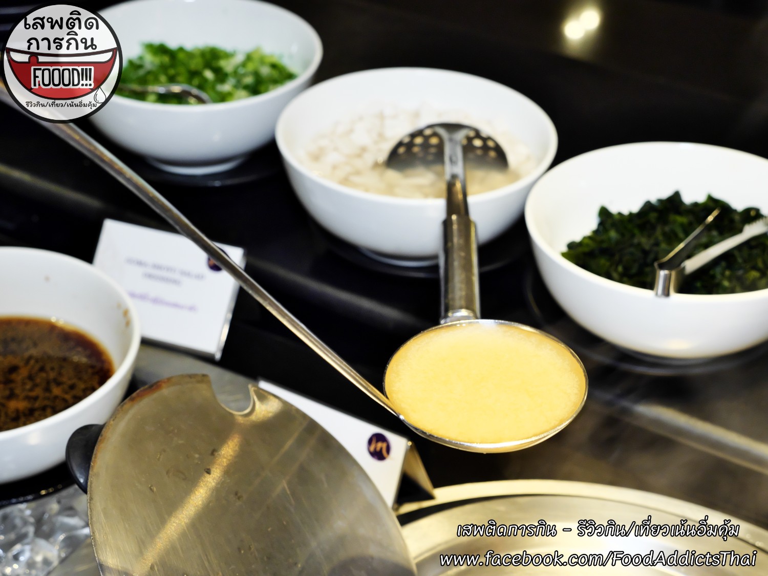 โซนต่อมาเป็นอาหารพร้อมทาน เริ่มจากเค้าท์เตอร์ที่เชฟจะคอยปรุงอาหารญี่ปุ่นเมนูร้อนให้เรา ถัดมาเป็นซุปใสและซุปมิโสะพร้อมเครื่องต่างๆให้ใส่ได้ตามใจ ใครเป็นสายสุขภาพที่นี่ก็มีผักสดและน้ำสลัดให้เลือกถึง 4 ชนิด ไลน์อาหารก็มีให้เห็นประมาณนี้ ที่เหลือจะเป็นไอศครีมและของหวานทั้งหมด ตอนนี้อาหารทยอยมาเสิร์ฟที่โต๊ะแล้ว ลืมบอกไปเลยว่าบุฟเฟ่ต์มื้อนี้รวมชาเขียวเย็นและชาเขียวร้อนรีฟีลเรียบร้อยแล้ว ทางห้องอาหารจะเสิร์ฟซุปมิโสะให้เป็นอันดับแรกก่อนที่อาหารจะมาเป็นการเรียกน้ำย่อย น้ำซุปของที่นี่รสชาติหอมกลิ่นปลาคัตสึโอะกลมกล่อมดีครับ