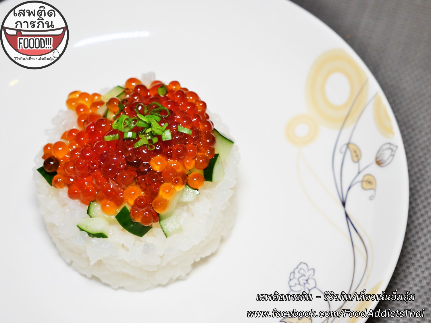 อาหารชุดแรกสั่งมาแต่เมนูพรีเมี่ยมราคา 999++ เริ่มจากเมนูปลาไหลย่างซอสเทริยากิ ปลาไหลเนื้อนุ่มฟูมันเยอะย่างจนหอมกลิ่นถ่าน ราดด้วยซอสเทอริยากิหวานกลมกล่อม ไม่เหม็นกลิ่นหืนและกลิ่นโคลนแบบหลายๆร้าน ผมเป็นปลาไหล Lover อยู่แล้ว ถ้าเป็นเกรดบุฟเฟ่ต์ผมให้ที่นี่คุณภาพเป็นอันดับ 1 เลยครับ เมนูถัดมาเป็นกุ้งแม่น้ำเทปันยากิ กุ้งตัวใหญ่เนื้อแน่น หอมกลิ่นเนย/กระเทียมอ่อนไหว ทานกับน้ำจิ้มซีฟู้ดรสแซ่บ ดีงามเลยครับ ซูชิหน้าตับห่าน ข้าวซูชิปรุงรสเปรี้ยวหวานกลมกล่อม วางด้านบนด้วยฟัวกราสไลด์บาง ลนไฟจนสุกหอม ท๊อปปิ้งด้านบนด้วยไข่ปลาแซลมอน ราดซอสรสหวานเค็ม ได้ทั้งความนุ่มลื่นของตับห่านและกรุบกรอบไข่ปลาในคำเดียวกัน ดีม๊าก ! แต่ผมทานได้ไม่เยอะครับ ซูชิหน้าเนื้อวากิว เนื้อวากิวที่ทางห้องอาหารเลือกใช้น่าจะเป็นออสเตรเลียควรกิน ที่ค่อนข้างมีกลิ่นแรง ทานกับซอสรสหวาน/เค็มสไตล์ญี่ปุ่น ถือว่ารสชาติดี ถ้าใช้เนื้อวัวที่คุณภาพดีกว่านี้อีกนิด จะดีมากครับ