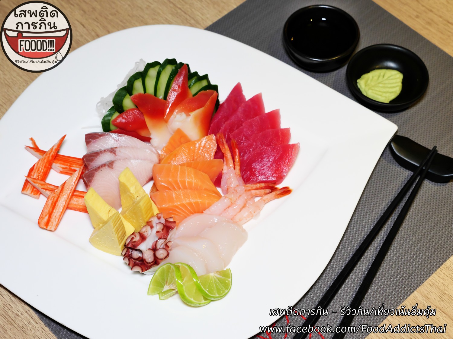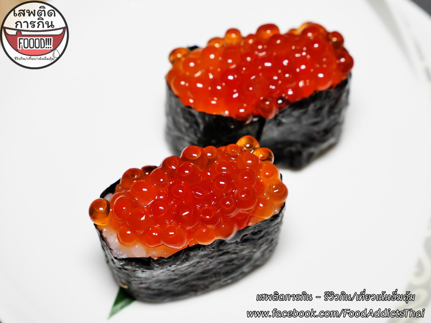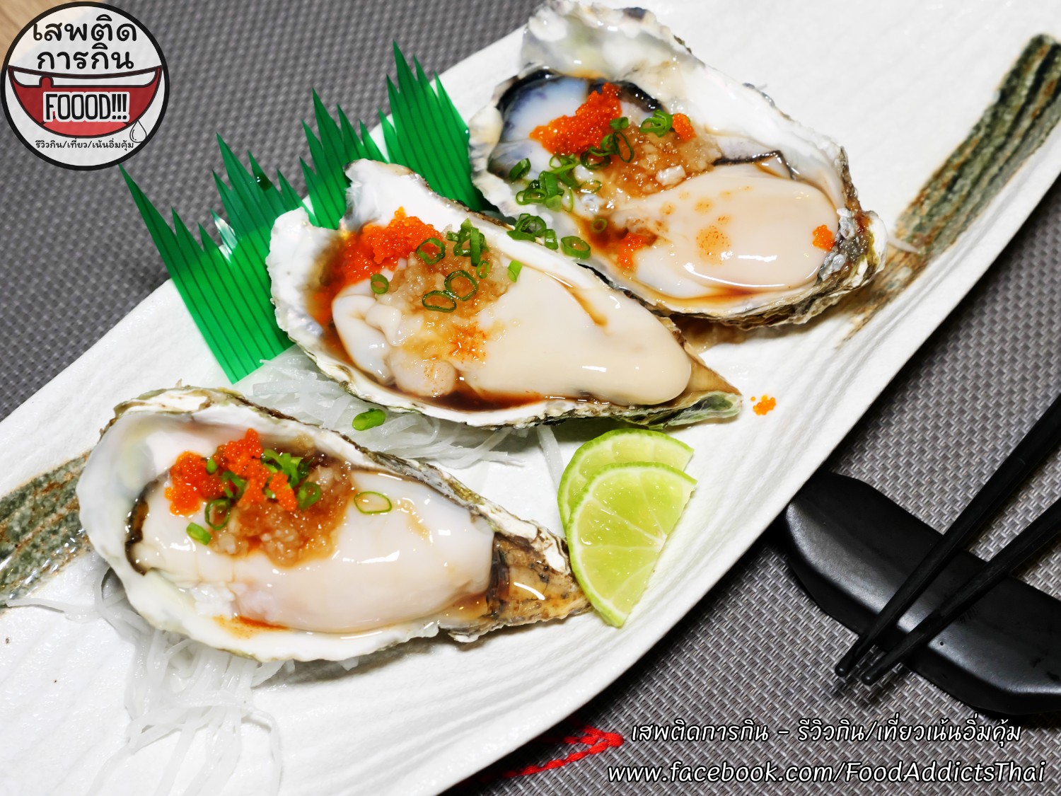 ซูชิหน้าไข่ปลาแซลมอน รสชาติแบบเดียวกับข้าวหน้าเมื่อกี้แต่ข้าวพันสาหร่ายกรอบๆมาเพิ่ม จานต่อมาเป็นซาชิมิรวมทั้งปูอัด/ปลาฮามาจิ/ไข่หวาน/หมึกทาโกะ/หอยเชลล์โฮตาเตะ/กุ้งหวาน/ปลาทูน่า/ปลาแซลมอนและหอยปีก นก มีความสดหวานทุกเมนู ที่สำคัญทูน่าของที่นี่ใช้ส่วน Akami มาเสิร์ฟจริงๆ ไม่ใช่เอาปลาโอเนื้อเหม็นคาวเลือดมาให้ทาน เท่าที่ทานมามีไม่กี่ร้านที่เสิร์ฟทูน่าจริงๆในบุฟเฟ่ต์อาหารญี่ปุ่นราคาต่ำกว่า 1,000 ฿ แต่ที่นี่จ่ายแค่799++ ก็ได้ทานแล้วครับ อันนี้ถือว่าประทับใจ หอยนางรมญี่ปุ่นตัวใหญ่เนื้อขาวอวบราดซอสพอนสึ ปกติร้านอาหารญี่ปุ่นที่อื่นราคาตัวละ 90-110 บาทแต่ที่นี่มีให้ทานเรื่อยไป ตัวเล็กหน่อยแต่ความสดหวานละลายในปากไม่ต่างกันเลยครับ