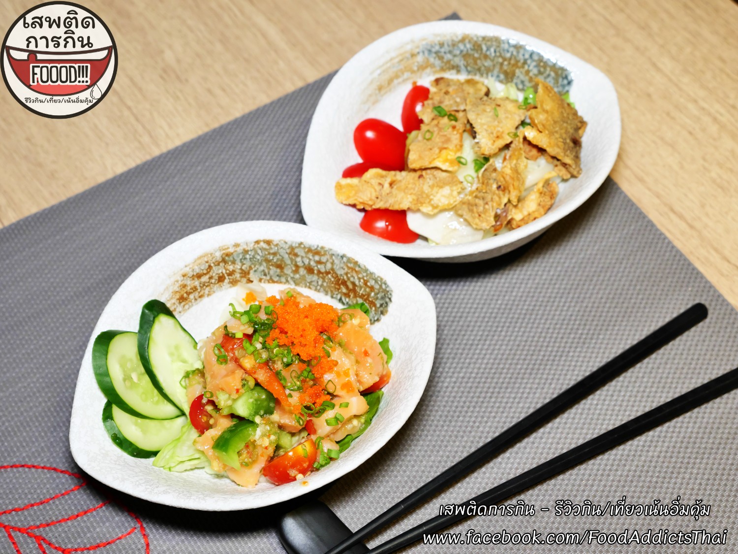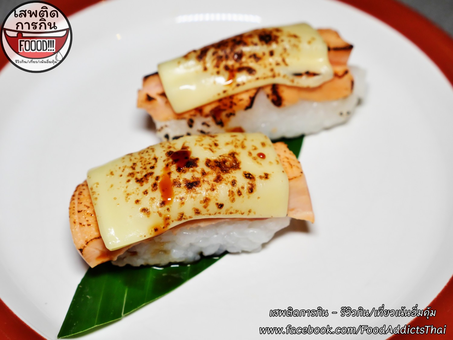 ซาชิมิปลาซาบะดองเนื้อมัน หอมกลิ่นไขมันปลาที่เป็นกลิ่นเฉพาะ ดองมารสเปรี้ยวหวานอ่อนๆอร่อยดีครับ อีก 1 เมนูปลาราคาแพงก็มีให้ทานในบุฟเฟ่ต์นั่นคือปลาฮอกเกะย่างซอสเทริยากิ ปลาฮอกเกะที่มีไขมันเป็นกลิ่นเฉพาะตัวย่างมาด้านนอกแห้งแต่เนื้อในฉ่ำ เคลือบซอสเทริยากิหวานเล็กน้อย อร่อยดีครับแต่ก้างเยอะไปหน่อย ทานนานๆเริ่มเลี่ยนสั่งแซลมอนยำไทยมาลองทาน เนื้อแซลมอนสดเย็น ทานกับน้ำยำรสเผ็ด/เปรี้ยว/หวาน เพิ่มสัมผัสความกรอบด้วยแตงกวา/มะเขือเทศ/ไข่กุ้ง แก้เลี่ยนได้ดีเลยครับ ต่อกันด้วยสลัดหนังปลาแซลมอนทอดกรอบ ที่ราดน้ำสลัดญี่ปุ่นหอมกลิ่นงาและโชยุ เข้ากับผักสดเย็นๆได้ดีครับ เนื้อวากิวย่าวซอสเทริยากิ รสชาติเนื้อและความเหนียวแบบเดียวกับที่ทานซูชิเนื้อวากิวชุดแรก แต่หั่นมาเนื้อหนาเป็นชิ้นและราดซอสเทริยากิมาชุ่ม ส่วนตัวว่าไม่ผ่านครับ