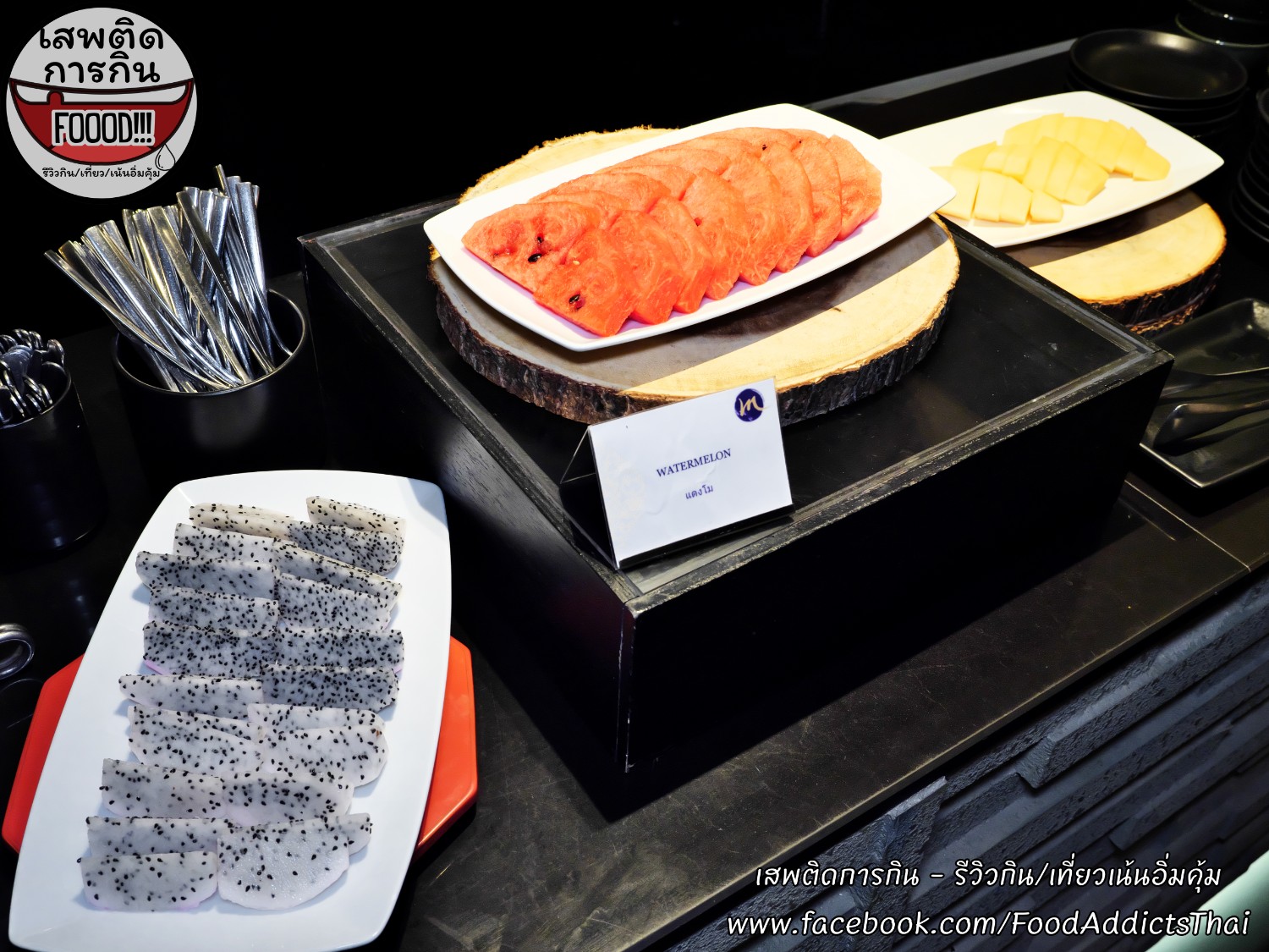 ของหวานที่นี่เราสามารถสั่งได้จากที่โต๊ะ หรือเดินมาดูเองก็ได้ มีให้ทานทั้งไอศครีมชาเขียว/ไอศครีมรสสตรอเบอรี่รสชาติเข้มข้น ท๊อปปิ้งด้วยแอลมอนด์สไลด์/เกล็ดช๊อกโกแลตหรือลูกเกดได้ตามใจ มึเค้กและมูสต่างๆให้หยิบได้เรื่อยๆ ผลไม้สดอีก 3 ชนิดคือ แก้วมังกร/แตงโม/แคนตาลูป บุฟเฟ่ต์ราคาเริ่มต้นจะได้ทานขนมหวานแบบนี้นะครับ