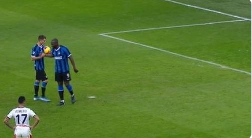เจนัวพยายามทำเกมส์บุกสู้ ในนาทีที่ 63 ขณะที่ อินเตอร์ นำอยู่ 2-0 Gagliardini ถูกเสียบล้มในเขตโทษ