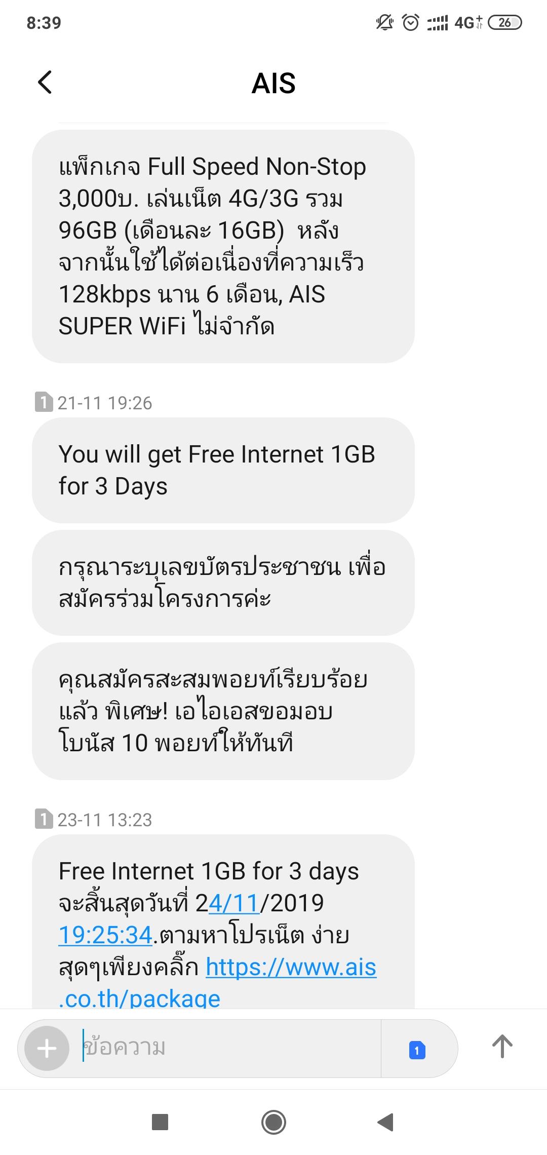 เมื่อวันที่ 21-11-2019 ซื้อ โทรศัพท์ redmi note8 lite ที่จ่าย ค่าเครื่อง 999 จ่ายล่วงหน้า 3000 บาท ได้โปรตามที่แจ้งเดือนละ 16 GB นาน 6 เดือน รวม 96 GB แต่พอวันที่ 20-12-2019 ที่ผ่านมา มี sms ส่งมาแจ้งจะสิ้นสุด แบบนี้คือจะไม่ได้อีกต่อ 5 เดือนใช่มั้ยค่ะ เช็คใน my ais ได้มาแค่ 16 GB(หมดไปแล้ว)แล้วก็ไม่ได้เน็จ non 128 Kbps แต่ไม่ได้แคปไว้