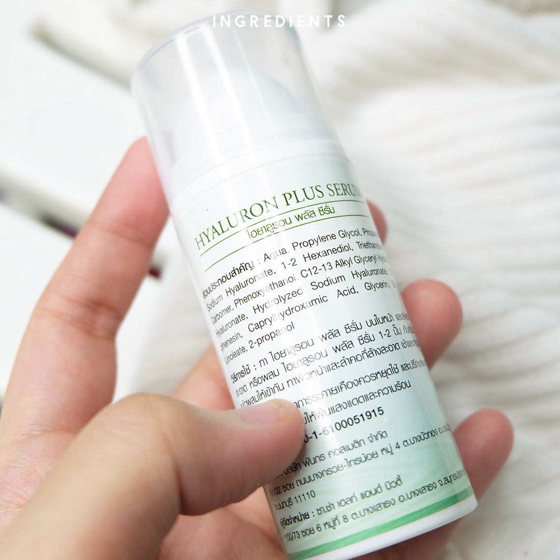 เจ้าตัวนี้เป็นเซรั่มไฮยาลูรอนเพียวที่ประกอบไปด้วยไฮยาถึง 5 โมเลกุลและราคาไม่โดดเว่อร์ คือ เคยเจอบางแบรนด์โดดราคาไปสูงมาก แต่แบรนด์นี้เขาว่า พี่ที่ทำมีทีม R&D ของตัวเอง และเจ้าของแบรนด์ ก็เป็นนักวิทยาศาสตร์ที่ทำสูตรเอง ดังนั้นพวกค่าใช้จ่ายเกี่ยวกับ R&D เลยไม่ถูกบวกลงไปในราคาสินค้า เรื่องความปลอดภัย + คุณภาพเลยหายห่วง ส่วนที่เราได้ฟังแล้วรู้สึกว่า เหย น่าลองมากก อีกอย่างก็คือ แบรนด์นี้มีการพัฒนาสูตร+ผลิตร่วมกับสวทช. (คือมีแค่ไม่กี่แบรนด์ที่จะสามารถทำได้) รวมถึงพวกส่วนประกอบทุกตัวที่เขาใส่มาอยู่ในระดับที่แอคทีฟกับผิว ปราศจากสารเคมีที่อาจก่อให้เกิดการระคายเคืองกับผิว ทุกสภาพผิวสามารถใช้ได้ ไม่ว่าจะผิวแห้ง-ผสม-มัน รวมถึงผิวอ่อนแอ แพ้ง่าย เป็นสิวง่าย