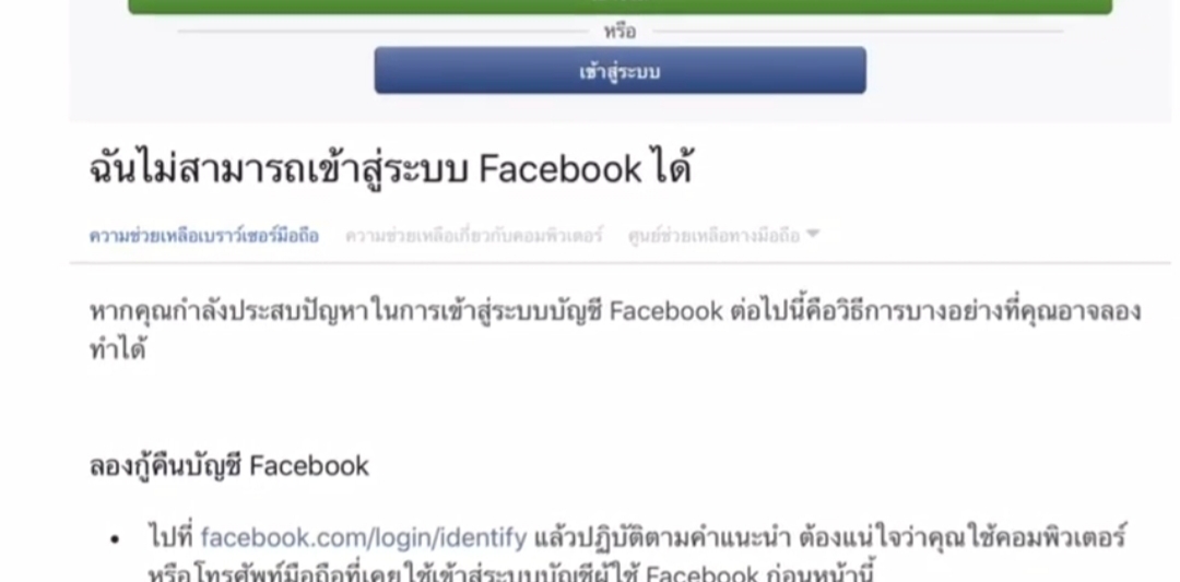 หาคำว่า ฉันไม่สามารถเข้าสู่ระบบ Facebook ได้